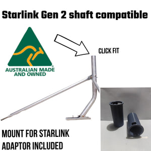 Designed for the Starlink Gen 2 (Roam) dish shaft. Suits tin (corrugated iron, Colorbond) and tile roofs.
