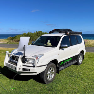 Mount your Starlink Gen 2 dish to your vehicle's bull bar, nudge bar, or roof rack railing for a quick, secure setup at camp. The adjustable clamp fits round tube from 40mm to 90mm diameter, covering most bull bars and roof rack rails on Australian 4x4s, utes, and touring vehicles.
