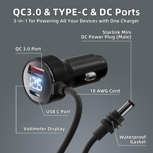 Power your Starlink Mini reliably from any vehicle with this versatile dual-USB car charger featuring a dedicated 3M DC output cable boosted to a stable 20V. Designed to eliminate vehicle-voltage issues, it ensures the Starlink Mini receives the correct power whether you're running a 12V or 24V setup.