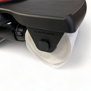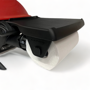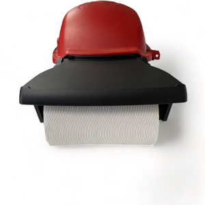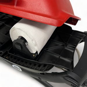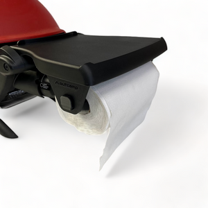 The design allows the side tables to be folded in with the paper towel installed without the need for removal.